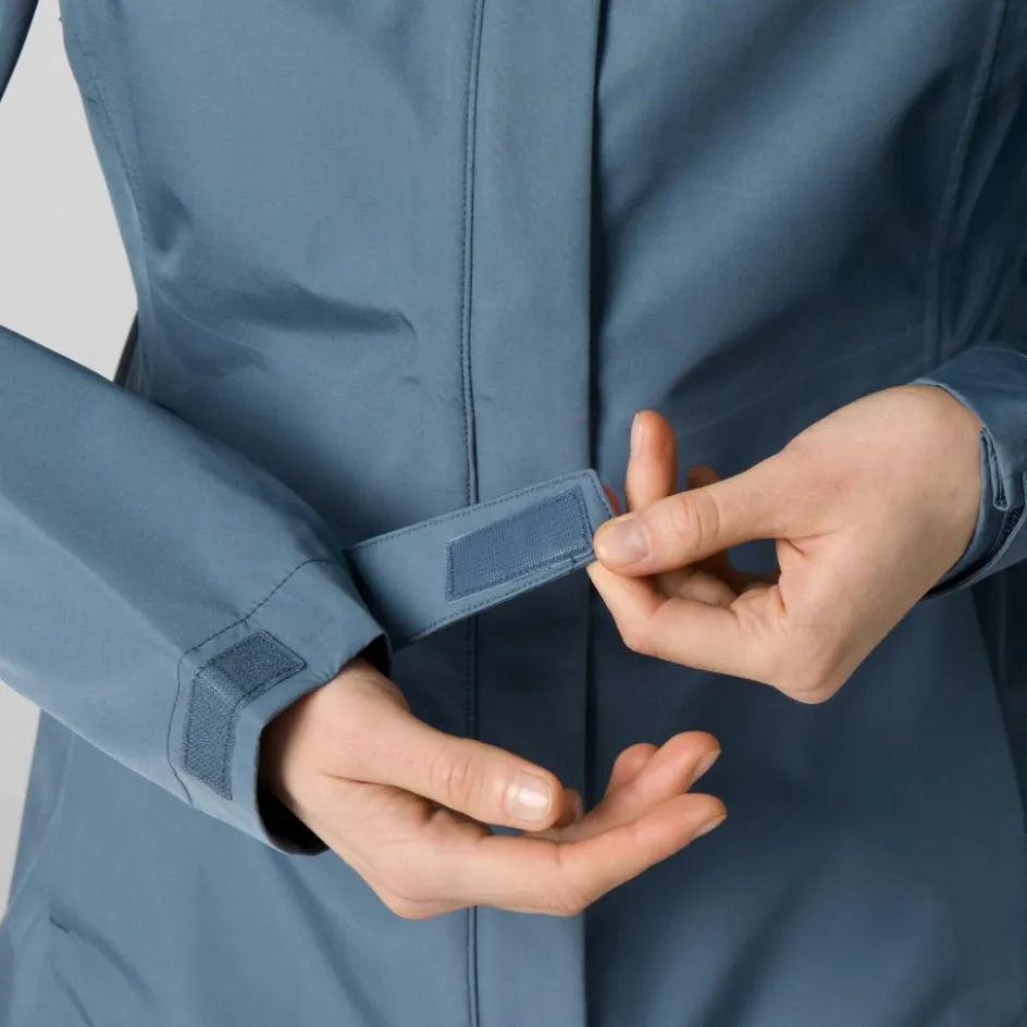 Durch die Sturmkapuze mit Volumen-Regulierung vorne und hinten bist du auch bei windigem Regenwetter optimal geschützt. Ein Schnürzug im Saum sowie die mit Klettverschluss regulierbaren Ärmelabschlüsse sorgen für guten Sitz und idealen Schutz bei Sturm und Nässe. Und auch durch den mit Windschutzleiste verdeckten Front-RV sind Wind und Regen chancenlos.