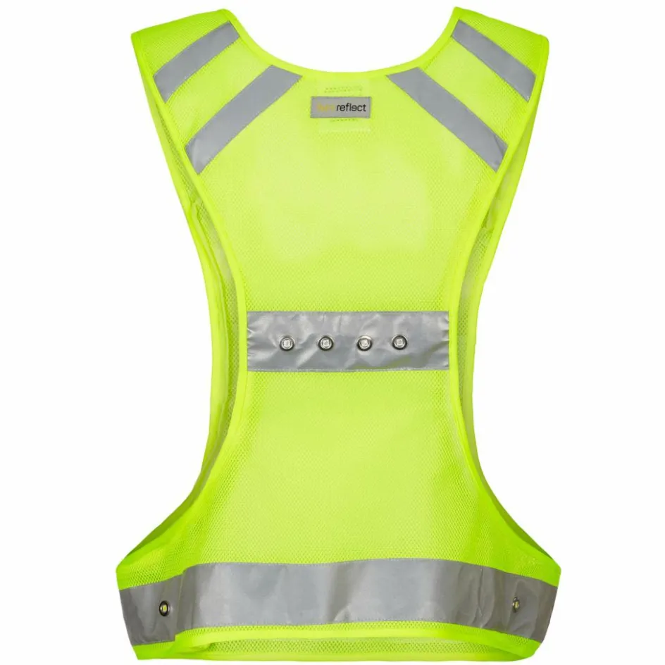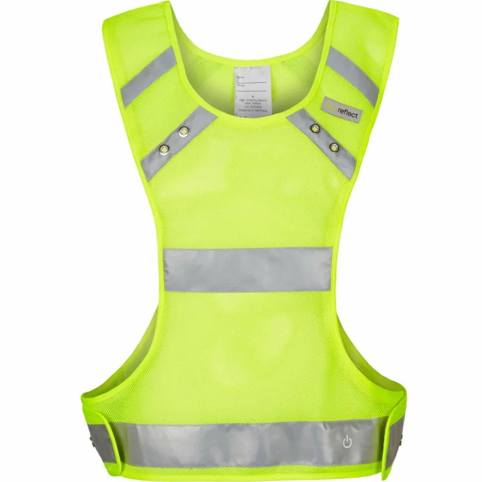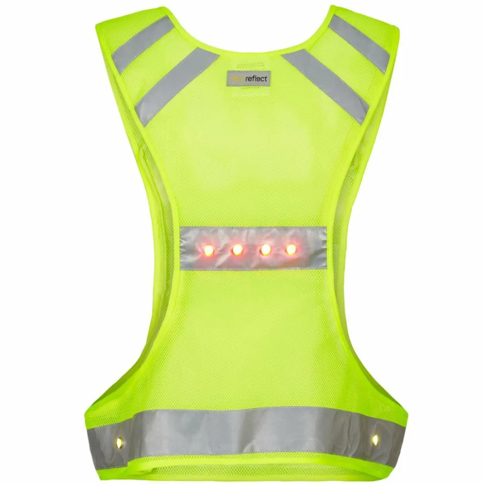 Dank der leuchtenden LEDs bist du schon aus einer Entfernung von 400 Metern zu sehen. Das ist laut heyReflect dreimal früher als bei Warnwesten ohne LED-Beleuchtung. Die LEDs sind auf der Weste so platziert, dass eine 360-Grad-Sichtbarkeit gegeben ist.