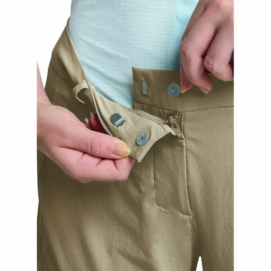 Für komfortable Abenteuer sorgen das sehr elastische und atmungsaktive Gewebe der Trekkinghose. Auch der schmal zulaufende Schnitt und die vorgeformte Kniepartie tragen zu einem bequemen Tragegefühl bei. Bei schweißtreibenden Etappen steht dir das feuchtigkeitsleitende Band im Hosenbund zur Seite. Wichtige Utensilien wie Smartphone oder Energieriegel sind dank drei Taschen schnell zur Hand.