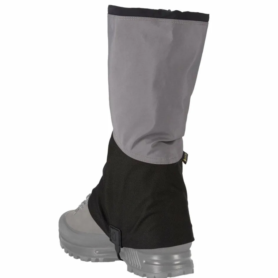 Die hoch geschnittenen Gamaschen sind äußerst robust konstruiert, um auch mit scharfkantigen Felsen und anderen Widrigkeiten zurechtzukommen, ohne Schaden zu nehmen. Der obere Bereich der hochwertigen Gamasche besteht aus Polyester-Gewebe. Der untere dunkel gefärbte Bereich hingegen aus PU-beschichtetem Nylon, das besonders widerstandsfähig ist.