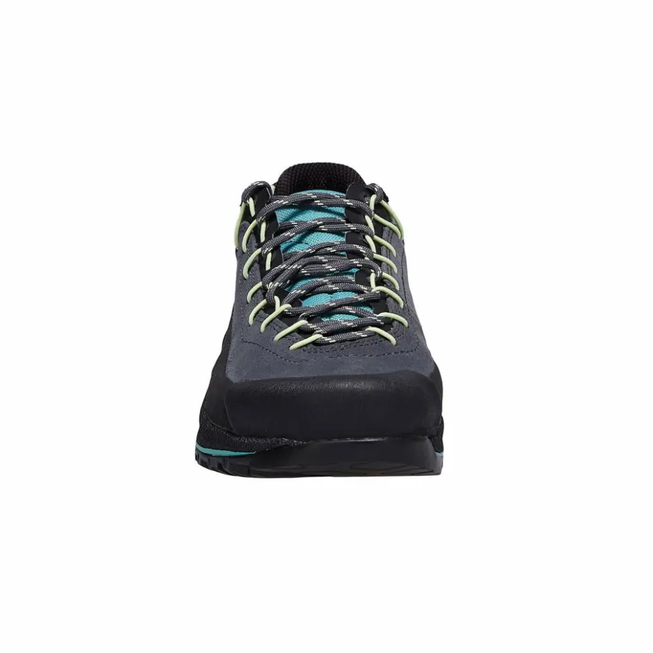 Wie auch schon sein Vorgängermodell weiß der solide Halbschuh dank allerhand nützlicher Details zu überzeugen. Sei es der umlaufende Geröllschutzrand oder die vorn im Zehenbereich ansetzende Kletterschnürung.