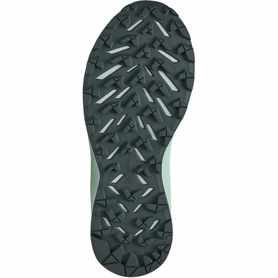 Das Obermaterial, vollständig aus synthetischem Mesh-Gewebe bestehend, sorgt für ein geringes Gewicht, macht den Schuh aber auch angenehm luftig und trägt somit zu einem ausgeglichenen Trageklima bei. Am Fuß entstehende Feuchtigkeit wird zuverlässig über das Obermaterial an die Umgebungsluft abgegeben. Damit das leichte Material in unwegsamem Gelände keinen Schaden nimmt, wurde es mit einem umlaufenden Schutzrand aus TPU versehen, der im Fersen- und Zehenbereich besonders ausgeprägt ist.