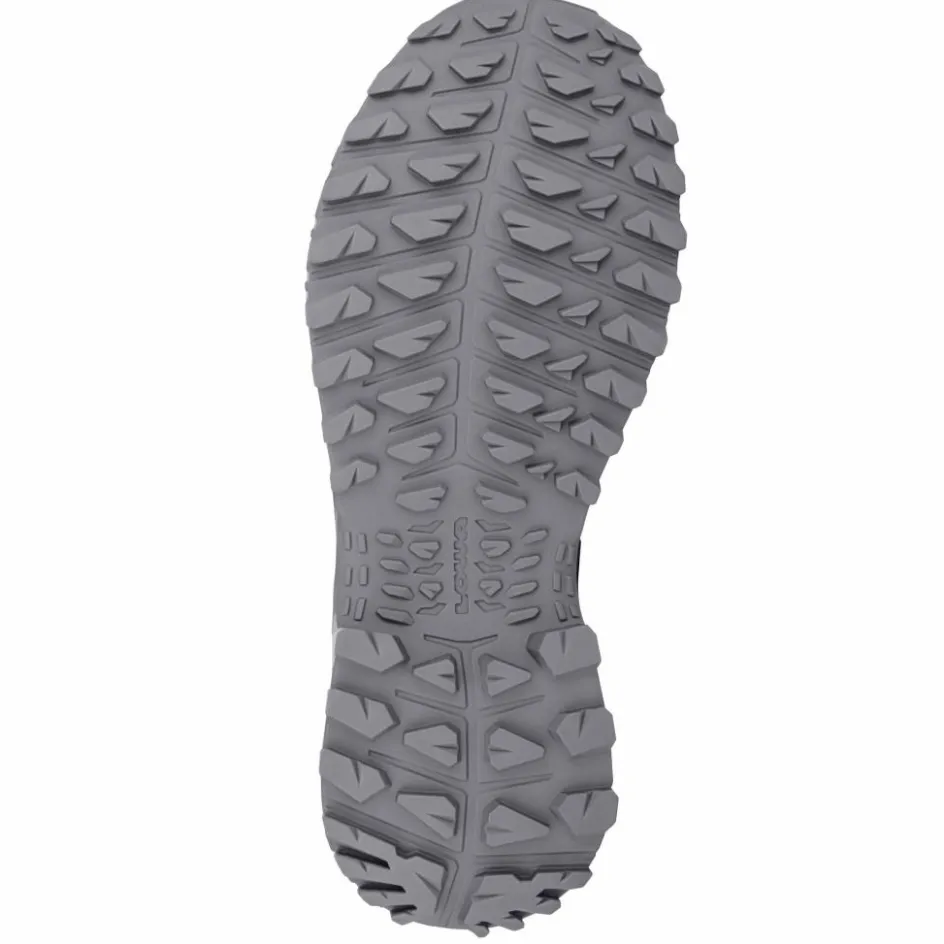 Auffallend ist vor allem die Sohlenkonstruktion. Es kommen zwei Dämpfungskeile aus PU zum Einsatz, die dank unterschiedlicher Härtegrade für optimalen Komfort sorgen. Im Fersenbereich ist der obere Keil außerdem besonders ausgeprägt, um einen möglichst festen Sitz des Fußes im Stiefel gewährleisten zu können. So stehst du nicht nur sicherer, der Fuß rutscht auch weniger im Schuh hin und her, wodurch auch das Risiko von Blasen merklich vermindert werden kann. Eine griffige Gummi-Profilsohle sorgt dank ihres ausgeprägten Profils auch auf losen Untergründen für bestmöglichen Halt. Dank ihrer eher weichen Gummimischung läuft es sich mit iher aber auch auf harten Untergründen wie Asphalt noch sehr angenehm.