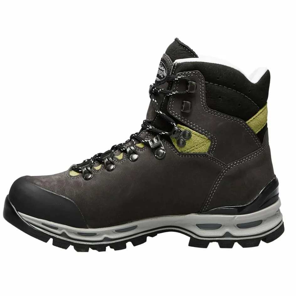 Das Obermaterial aus Nubukleder wird durch eine wasserdichte Gore-Tex Membran ergänzt. Damit bleiben deine Füße zuverlässig trocken. Eine Zehenkappe bietet zusätzlichen Schutz auf felsigem Untergrund, während die Vibram-Außensohle mit solidem Profil für sicheren Halt sorgt