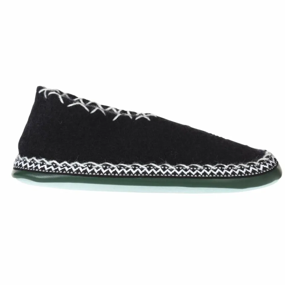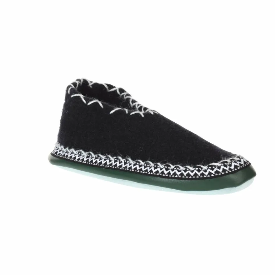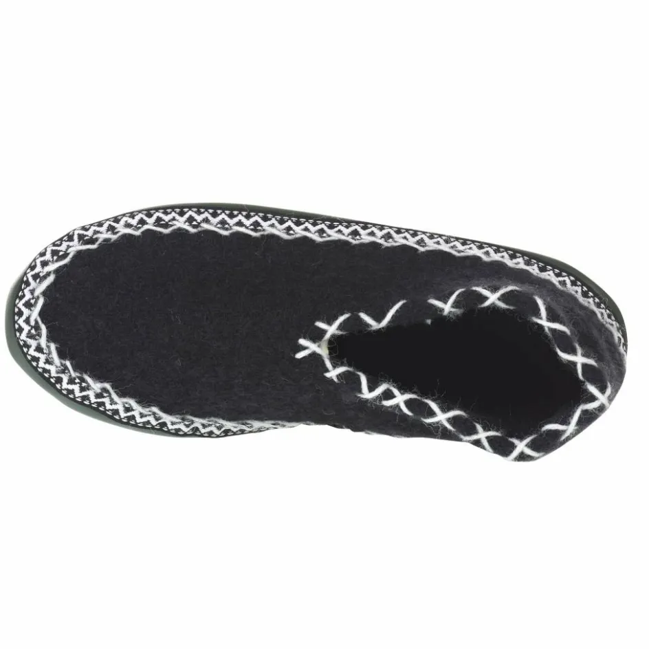 Nostalgischer Hüttenschuh für stilvolle Après Ski-Abende. Warm, weich und stilecht mit umkettelter Zierbordüre und geketteltem Knöchelrand.