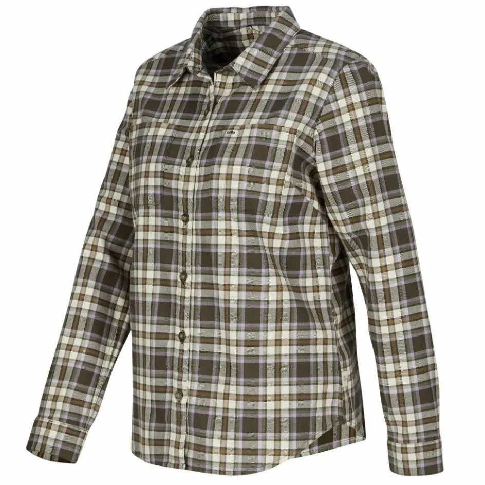 Der leicht taillierte Schnitt und die Abnäher am Rücken und im Brustbereich sorgen für eine schöne, feminine Passform. Das kräftige, robuste Material ist besonders langlebig und macht die Bluse zum treuen Begleiter für viele Jahre.