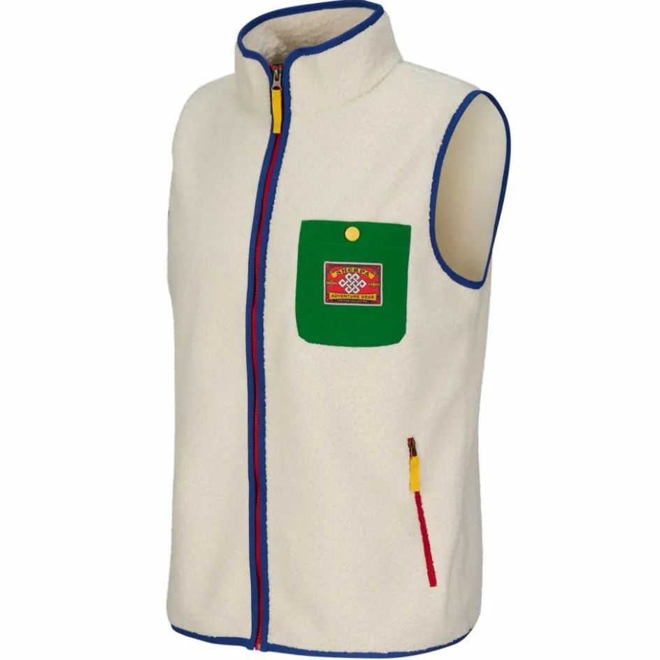 Die Tarcho Vest verdankt ihren Namen den tibetischen Gebetsfahnen, deren Farben sich auch in den bunten Applikationen der Teddyfleece-Weste wiederfinden.