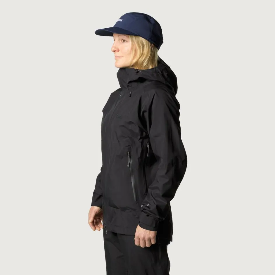 Die Regenjacke besteht aus leichtem Gore-Tex Paclite, das dir zuverlässig Regen und kaltem Wind vom Leib hält. Das Material ist stark atmungsaktiv, sodass du auch auf herausfordernden Wanderwegen ein angenehmes Klima in der Jacke hast. Gerätst du dennoch mal ins Schwitzen, sorgen die seitlichen Belüftungs-Reißverschlüsse dafür, dass Wärme und Feuchtigkeit schnell nach außen gelangen können. Die Reißverschlüsse befinden sich nicht direkt im Achselbereich, sondern sind etwas tiefer an den Seiten angebracht. Dort stören sie weniger, gerade wenn du einen Rucksack trägst.