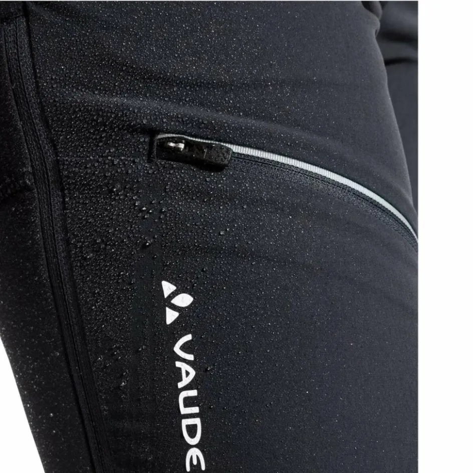 Das Hauptmaterial der Softshellhose besteht zum Großteil aus recyceltem Polyamid und dehnbarem Elasthan. Es hält also einiges aus und ist für bewegungsintensive Einsätze gemacht. Das Außenmaterial ist zudem stark windabweisend und dank des PFC-freien Eco-Finish auch wasser- und schmutzabweisend. Wechselhaftes Wetter und schlammige Wege sind somit kein Problem. Besonders beanspruchte Stellen wie Gesäß und Beinabschlüssen sind zusätzlich mit robusten Verstärkungen aus Cordura versehen, die vor Abrieb durch spitze Felsen schützen.