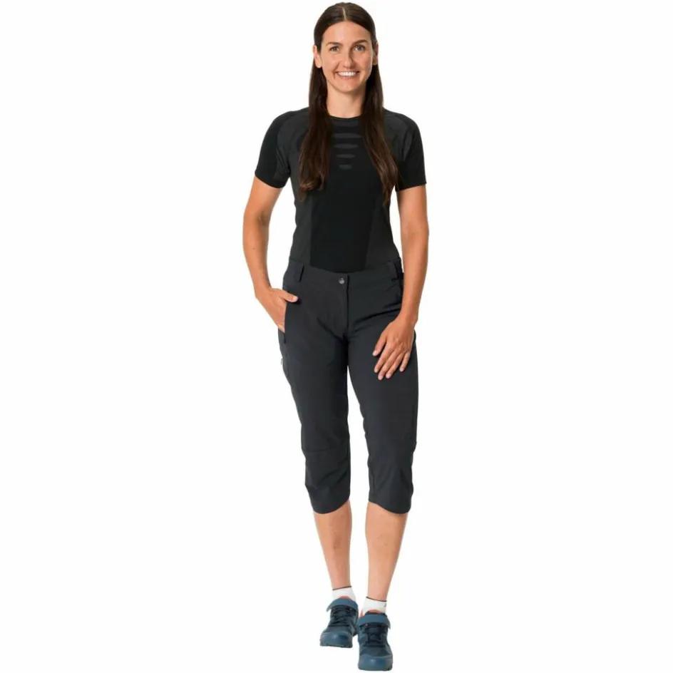 Sommerliche und komfortabel-elastische 3/4-Radhose, die du dank Innenhose mit Sitzpolster auch für längere Etappen super einsetzen kannst. Das Material ist Vaude-typisch sehr nachhaltig.