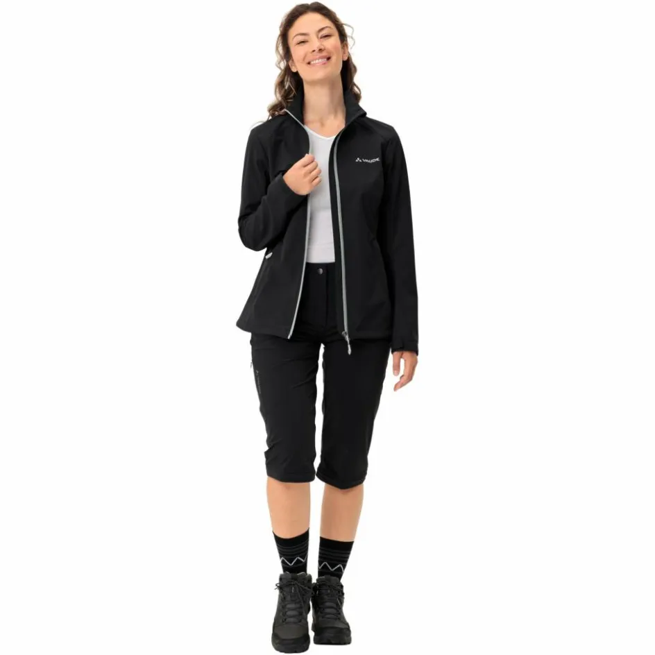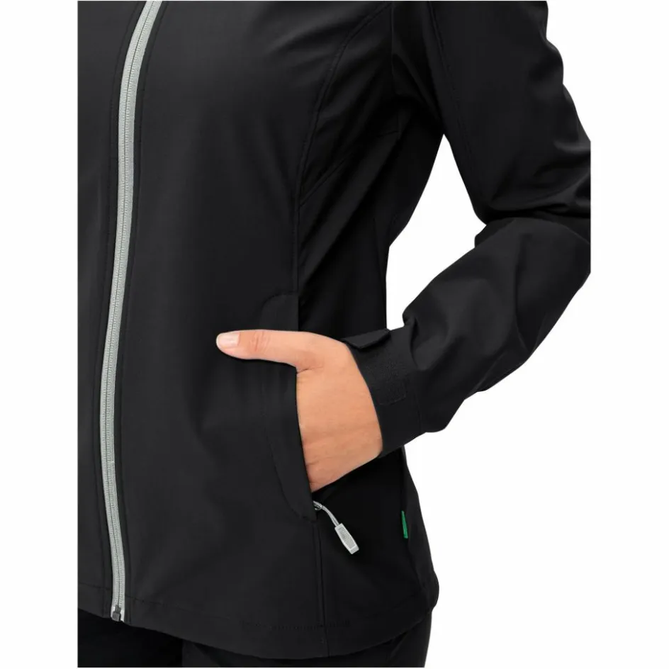 Ausgestattet mit einem vor Wind schützenden Stehkragen und unterlegtem Reißverschluss ist sie sowohl solo als auch als Midlayer unter einer Regenjacke einsetzbar. Ein Schnürzug, der sich durch die Taschen regulieren lässt und Klettverschlüsse an den Ärmelbündchen geben dir die Möglichkeit, die Softshelljacke nach deinen Bedürfnissen anzupassen.