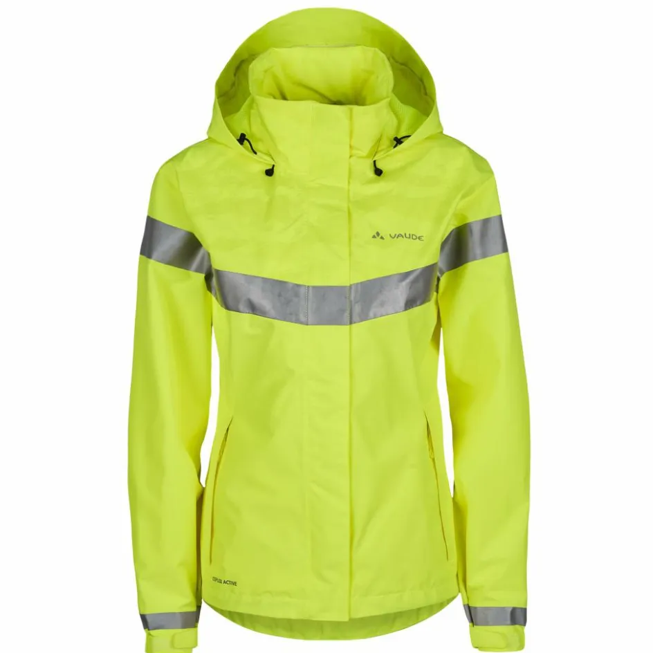 Starkes Neon-Gelb in Kombi mit großen reflektierenden Flächen: Die Women’s Luminum Rain Jacket stellt sicher, dass du im trubeligen Straßenverkehr nicht übersehen wirst!