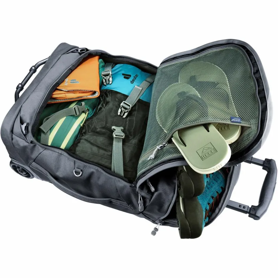 Auch bei der Duffel Pro Movo hat Deuter viel Wert auf das Thema Nachhaltigkeit gelegt und eine bluesign-Zertifizierung erhalten. Konkret bedeutet das: Das Hauptmaterial ist zu 50 % recycelt, das Produkt wurde ohne den Einsatz von PFAS hergestellt und klimakompensiert, und die Rollen sind im Reparaturfall austauschbar.