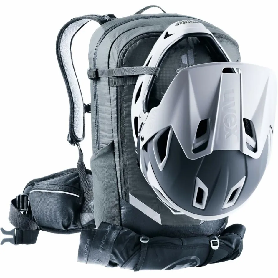 Weniger ist mehr – der gewichtsoptimierte, TÜV/GS zertifizierte Protektor-Rucksack Flyt SL ist auf die essenziellen Features reduziert. So sorgt ein leichter, herausnehmbarer Rückenprotektor für Schutz bei Stürzen. Zur Fixierung des Helms gibt es Clips außen am Rucksack (Halbschalen-Helm) oder seitliche Kompressionsriemen (Fullface-Helm). Zwei verstaubare Riemen am unteren Ende des Rucksacks ermöglichen zudem die Befestigung der Bike-Protektoren. Der speziell für Frauen verkürzte Rücken mit dem bewährten, leichten Airstripes-System sorgt zusätzlich für ausreichende, angenehme Belüftung.