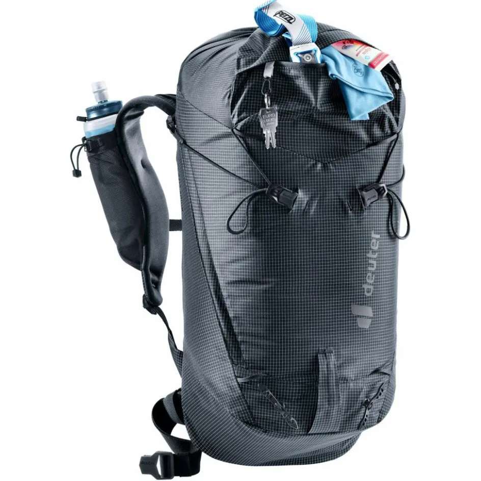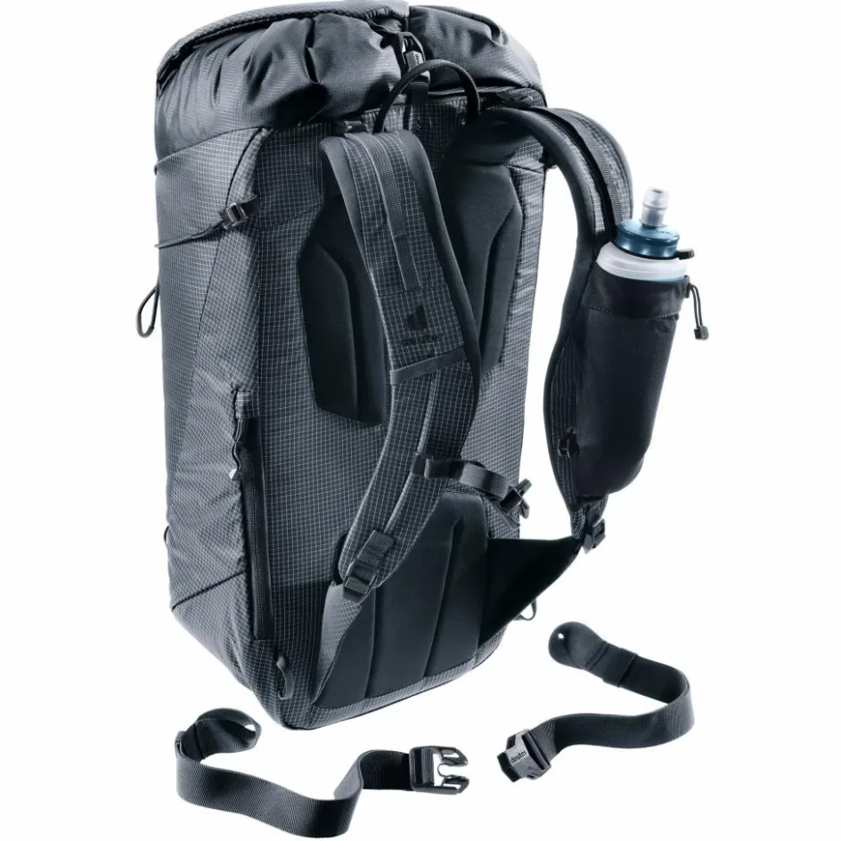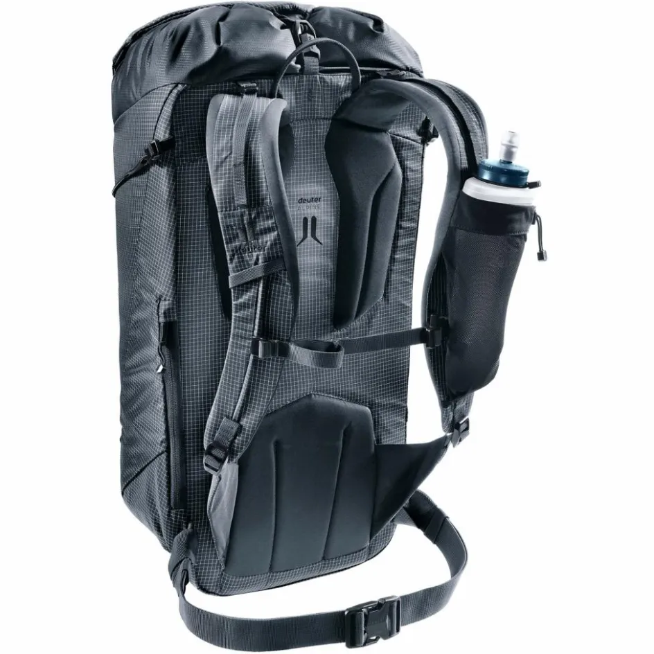 Der schmale Hüftgurt, das abnehmbare Helmnetz, die praktischen Befestigungsschlaufen, die beidseitige Pickelhalterung und Seilfixierung sorgen nicht nur für ein herausragendes Verhältnis von Tragekomfort zu Gewicht, sondern ermöglichen auch das Tragen eines Klettergurtes und bieten damit funktionale Flexibilität im Einsatz des Rucksacks.