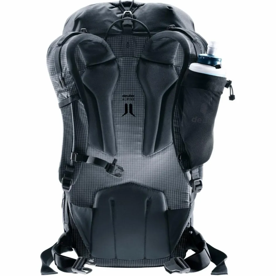 Das Alpine-Rückensystem bietet einen stabilen, sicheren Sitz für konzentriertes Agieren und hohen Tragekomfort in alpinem Terrain. Zudem sorgen die seitlichen Kompressionsriemen für die Fixierung des Rucksackvolumens nahe am Körperschwerpunkt.