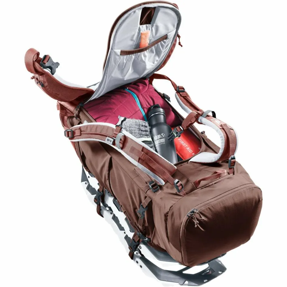 Der Schneeschuhtouren-Rucksack Rise SL vereint vielfältige Funktion und einfaches Handling. So sorgt das atmungsaktive, schneeabweisende Material des Rückensystems für einen trockenen Rücken. Die aufklappbare Rückenöffnung ermöglicht den Zugriff auf die Ausrüstung, während die Schneeschuhe dabei mit zwei Kompressionsriemen außen fixiert bleiben. Das separate Sicherheitsfach für Sonde und Schaufel ist im Notfall sofort erreichbar. Zudem ist das bluesign zertifizierte Hauptmaterial des <span style="text-align: left;" data-glossar-text="PFC (perfluorierte Kohlenwasserstoffe oder Fluorcarbone genannt) sind vollständig mit Fluor substituierte Kohlenstoffverbindungen, d.h., dass sie keine Wasserstoff-Atome mehr enthalten.