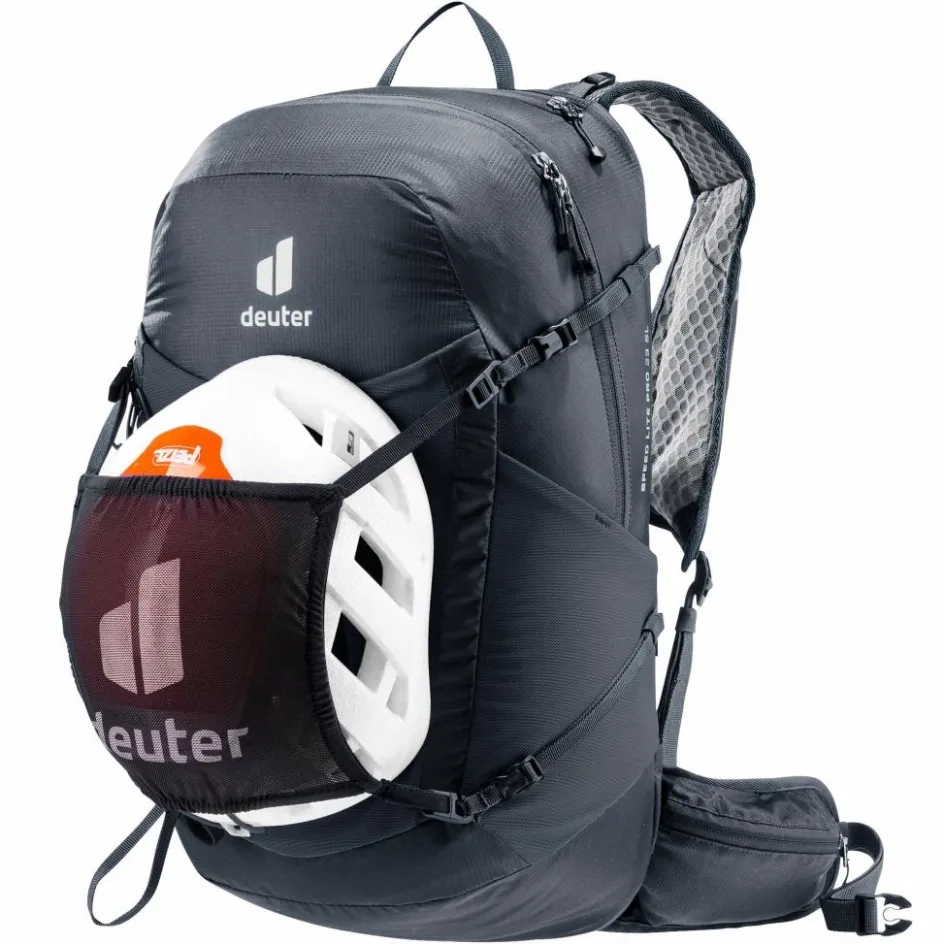 Für deine Ausrüstung hält der Speed Lite Pro 23 SL neben einem geräumigen Hauptfach auch ein Kopffach bereit, in dem Wertgegenstände und kleinere Ausrüstung übersichtlich untergebracht werden können. Zwei seitliche Steckfächer bieten Platz für Trinkflaschen und auch eine Trinkblase bekommst du dank eigenem Fach unter. Nach dem Regenschauer kannst du deine Jacke dank des elastischen Steckfachs auf der Front platzsparend und getrennt vom Rest deiner Ausrüstung verstauen. Wenn du deine Trekkingstöcke Mal nicht brauchst, kannst du auch diese griffbereit auf der Front befestigen.