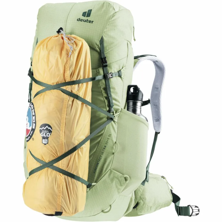 Der leichte Rucksack bietet eine hervorragende Gewicht-Komfort-Ratio. Zusätzlich kann das Gewicht dank abnehmbarem Deckel und Kompressionsriemen optimiert werden. Auch das Aircontact-Rückensystem mit Air Spacer Mesh trägt dazu bei, garantiert aber vor allem die Belüftung des Rückens. Die dank Clip & Loop-Lösung verstellbare Rückenlänge und die ergonomischen Hüftflossen sorgen für passgenauen Tragekomfort und gute Lastverteilung. Auch das robuste Ripstop-Material aus Hochleistungsfasern hält den Strapazen einer Langstreckenwanderung stand.
