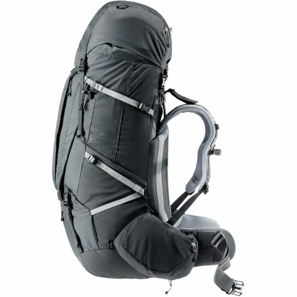 Die verschiedenen Volumengrößen der Rucksäcke sind durch das Aircontact-Rückensystem mit austauschbaren und flexibel konfigurierbaren VariFlex-Hüftflossen und ActiveFit-Schulterträger, sowie durch die verstellbare Rückenlänge des VariSlide-Systems auf die individuelle Anatomie des Trägers optimierbar und dank der Lastübertragung durch den stabilen Aluminium-Y-Rahmen und dem Lumbal-Pad mit großflächigem Abstandsgewirke (Air Spacer Mesh) sehr angenehm zu tragen.