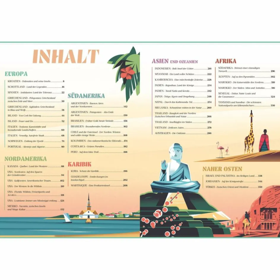 - Spannende Zusatzinformationen: Interessante Fakten über die Reiseziele sowie zum Zielort passende Buch-Empfehlungen ergänzen die Touren und ermöglichen Ihnen einen tiefen Einblick in die Urlaubsorte.