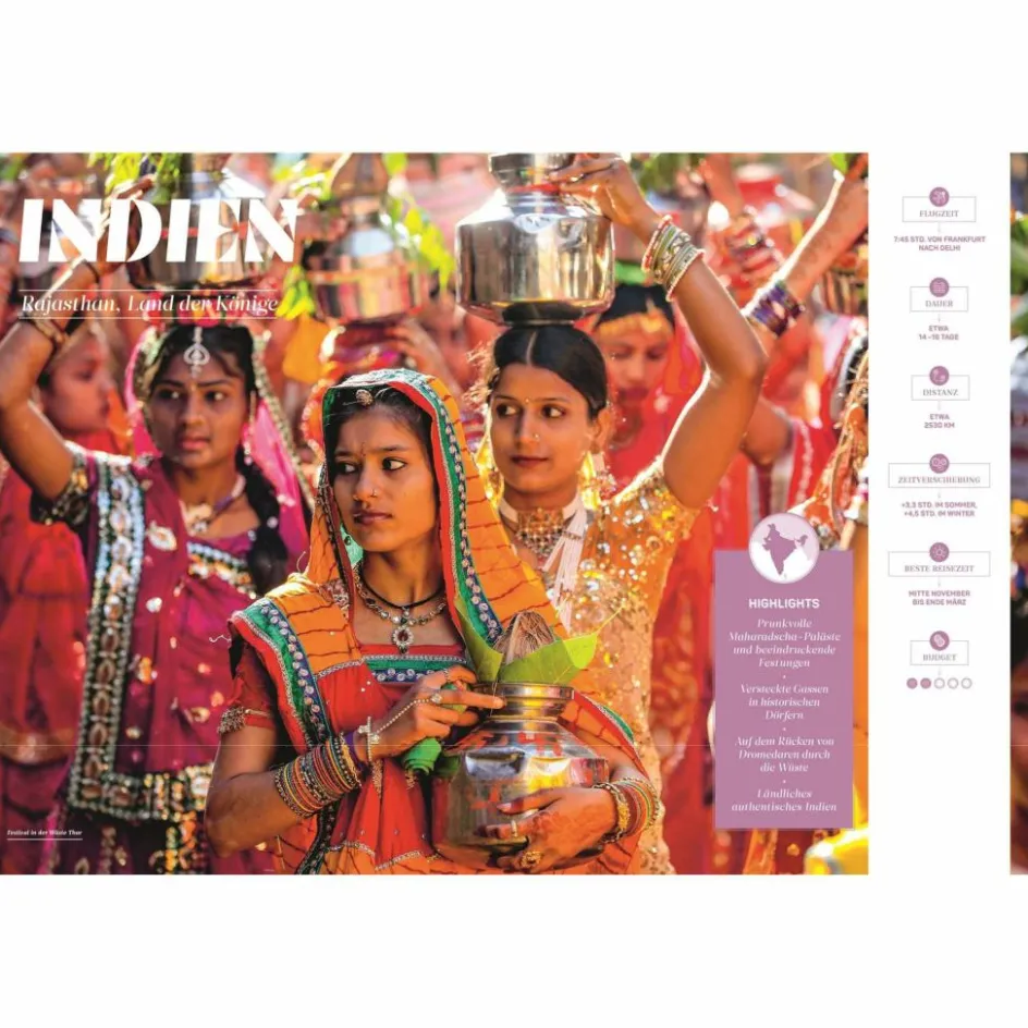 - Das Wichtigste auf einen Blick: Zu Beginn jeder Reiseempfehlung informiert eine praktische Übersicht über grundlegende Reiseinfos, wie Reisedauer, beste Reisezeit, Budget und Highlights der Reise.