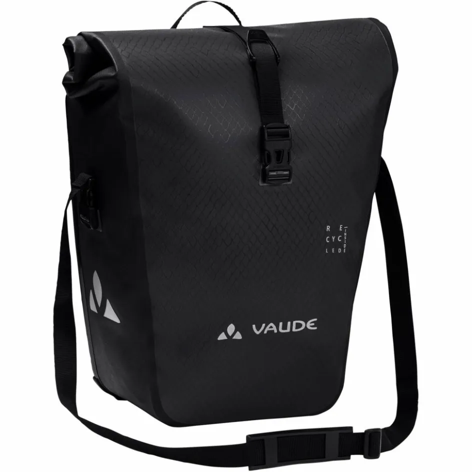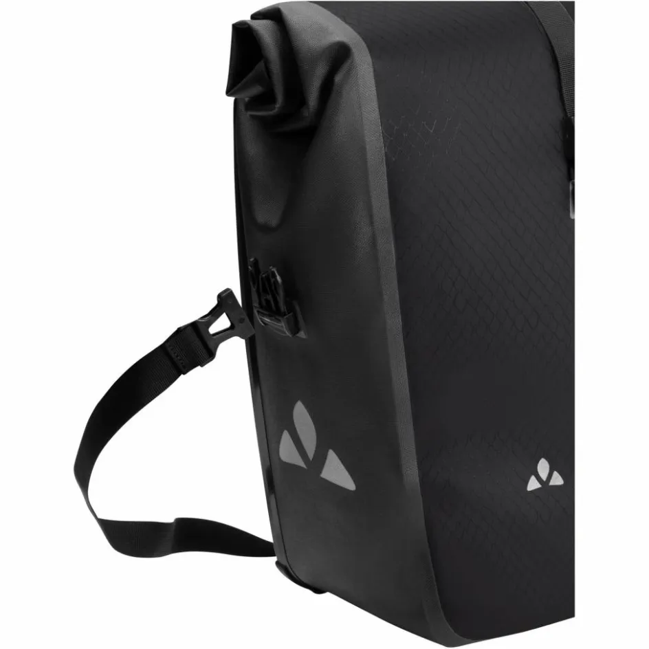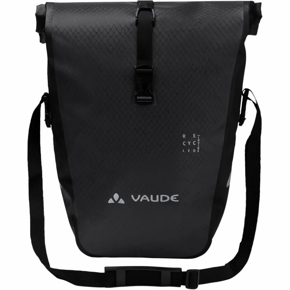 Auch das QMR 2.0 Eco System, also die Haken, mit denen du die Aqua Back (Rec) an deinem Gepäckträger befestigst, sind überwiegend aus recyceltem Polyamid gefertigt. Und: Die Beschichtung des recycelten Haupt-Materials kommt ohne PVC aus und ist aus PU. All das demonstriert: Vaude geht es in Sachen Nachhaltigkeit konsequent an.
