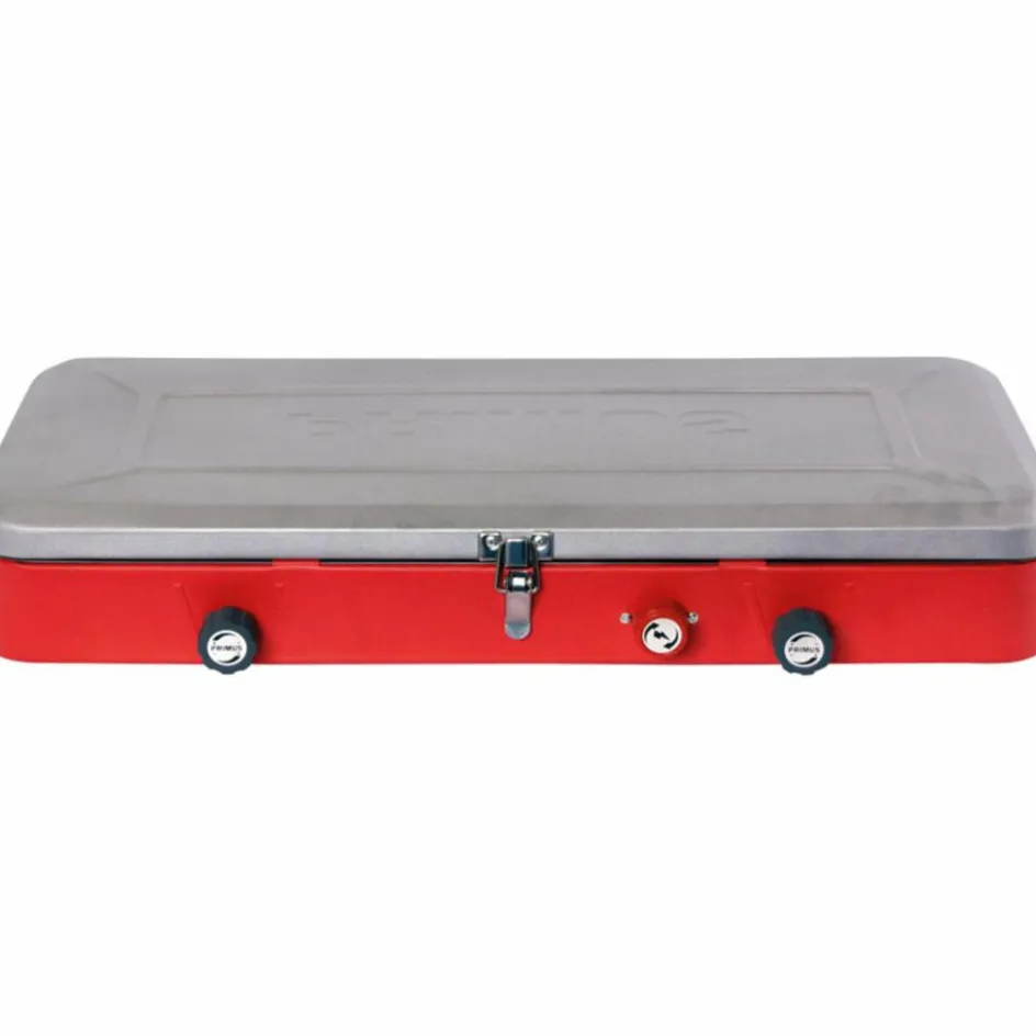 Die zwei Flammen werden per Piezo-Zündung entzündet und sind separat regulierbar. Auf der Kochstelle ist genügend Platz für große Töpfe und Pfannen. Der Deckel und die Seitenteile ergeben einen effektiven Windschutz und schützt gleichzeitig vor Fettspritzern beim Braten. So kann die ganze Familie bekocht werden und einem anspruchsvollen Menü steht nichts im Wege.