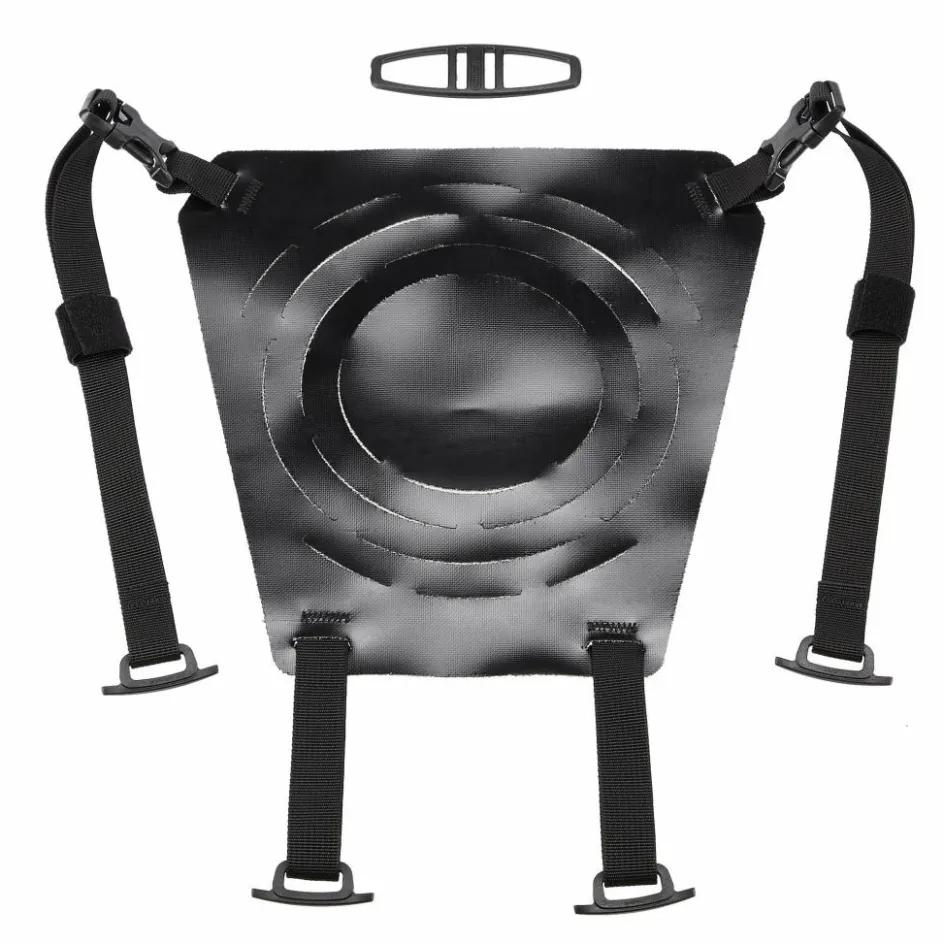 Die Halterung kann auf zwei Arten verwendet werden. Der Befestigungsriemen in Knebelform eignet sich für Helme mit großen Belüftungsöffnungen. Die Universalhalterung in Trapezform fasst Helme ohne große Belüftungsöffnungen, Bälle, aber auch diverse andere Ausrüstungsgegenstände.