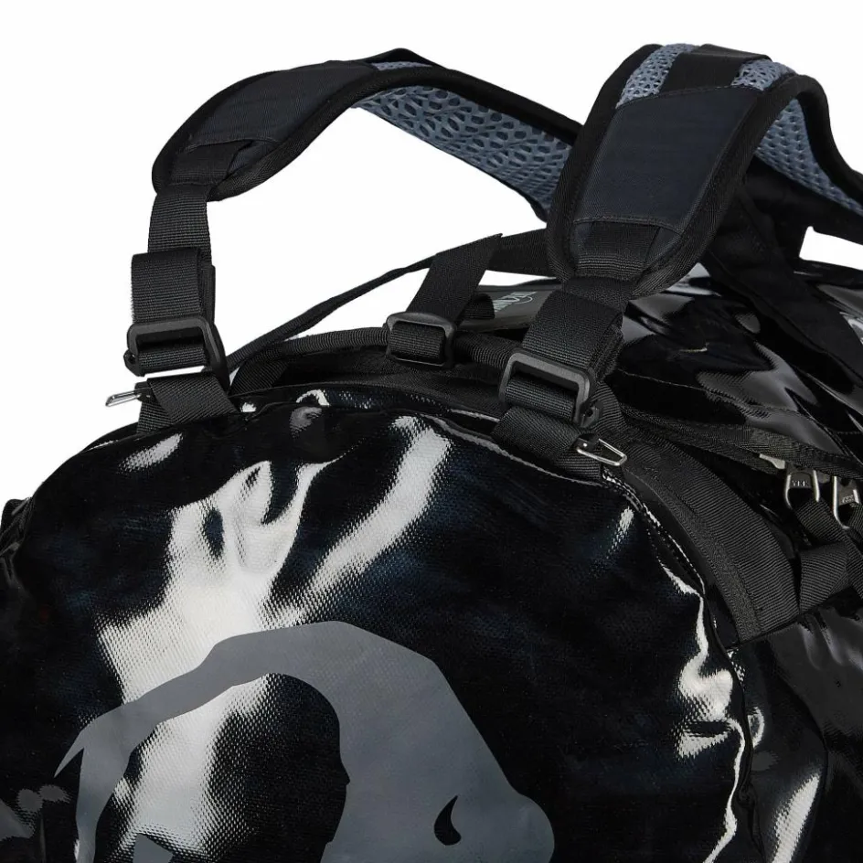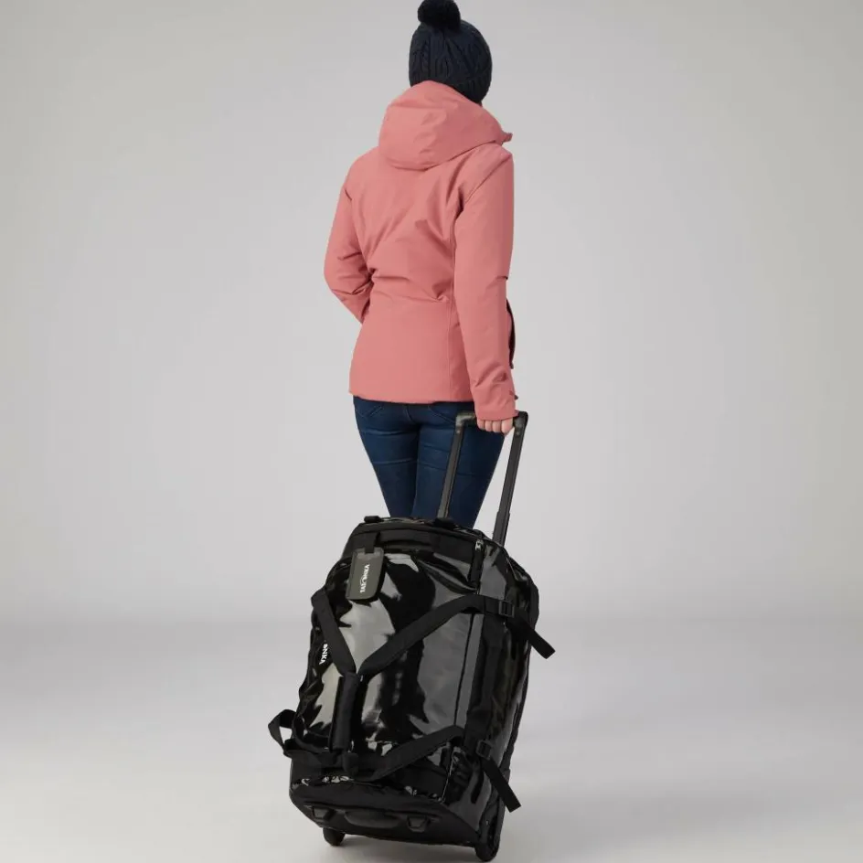 Die Barrel Roller 60 kommt in der Neuauflage ohne umweltschädliches PFAS aus. Dank TPU–Beschichtung ist der Inhalt dennoch bestens vor Feuchtigkeit geschützt. Auch in puncto Design hat sich das Obermaterial weiterentwickelt und besticht jetzt mit einer schicken Hochglanzoptik. Ebenfalls neu: Die abnehmbaren Schultergurte lassen sich dank mehrerer Befestigungsschlaufen flexibel umpositionieren und als Tragegurt nutzen. Zwei zusätzliche Tragegriffe an den Seiten (insgesamt vier) erleichtern zudem die Handhabung. Und damit die großvolumige Reisetasche mit Rollen auch bei geringerer Beladung formstabil bleibt, lässt sie sich mithilfe seitlicher Riemen einfach komprimieren.