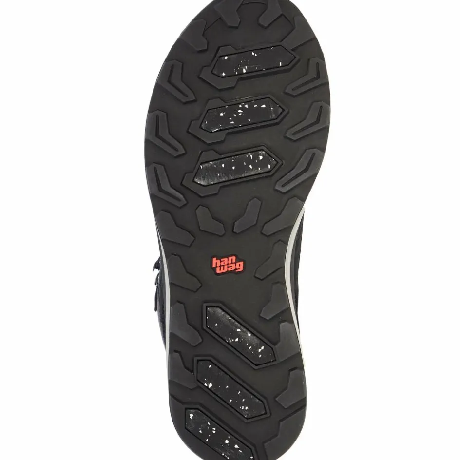 Ein weiteres wichtiges, wenn nicht das wichtigste Element des Stiefels ist die Sohlenkonstruktion. Zum einen wäre da die Zwischensohle aus unterschiedlich stark dämpfenden PU-Keilen. Sie wirkt stark stoßabsorbierend und unterstützt die Abrollbewegung beim Wandern. Zum anderen ist da die besonders griffig gestaltete Hanwag Fiberbrake Gummi-Profilsohle.