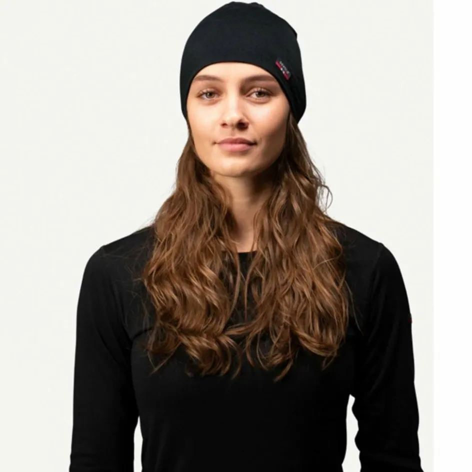 Merinowolle besitzt die praktische Fähigkeit, große Mengen an Feuchtigkeit aufzunehmen, ohne sich nass anzufühlen. Das ist sowohl beim schweißtreibenden Einsatz als auch bei leichtem Regen ein klarer Komfort-Vorteil. Außerdem wirkt Merinowolle temperaturausgleichend, geruchshemmend und antistatisch. So stehen dir beim Absetzen der Mütze nicht die Haare zu Berge. Dank des dünnen, elastischen Materials sitzt die Beanie auch unter Kapuzen und den meisten Helmen sehr bequem.