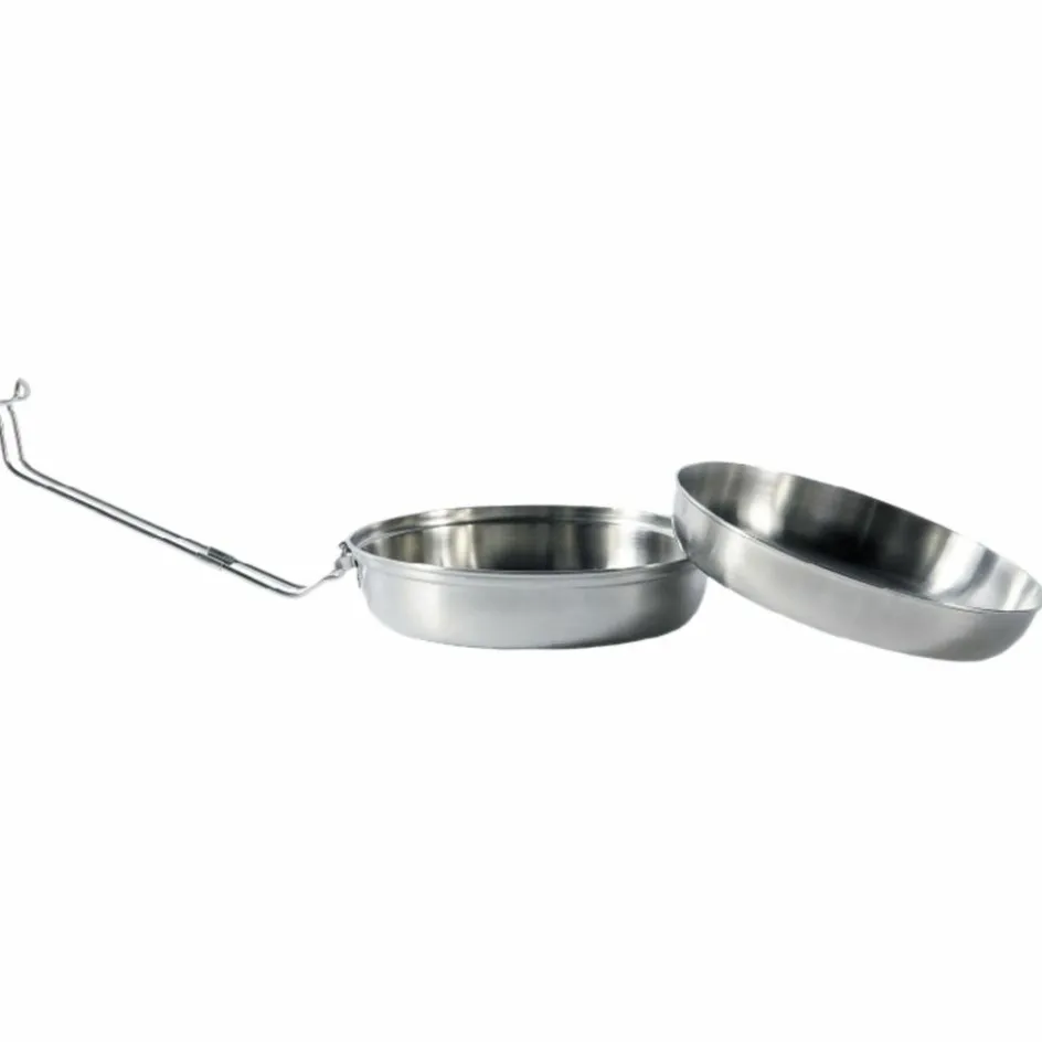 Dieses platzsparende Kochset aus Edelstahl ist ideal für Camping, Trekking oder andere Outdoor-Abenteuer. Das Set besteht aus vier Teilen – Topf, Pfanne und Schale lassen sich ineinander stapeln, sodass sie minimalen Stauraum benötigen. Der Topf mit 0,6 Litern Volumen verfügt über eine praktische Volumenskalierung zur einfachen Dosierung.