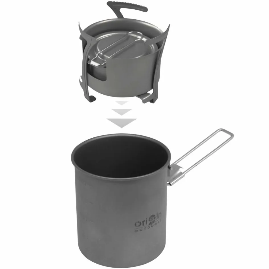 Der Topf eignet sich für leichtes, minimales Gepäck und zum Kochen kleiner Mahlzeiten und Wasser für einen Tee. Im Topf ist Platz zum Verstauen einer Gaskartusche (100 g oder 230 g – je nach Hersteller). Der Griff aus Edelstahl ist klappbar und kann zum Transport flach auf den Deckel gelegt werden.