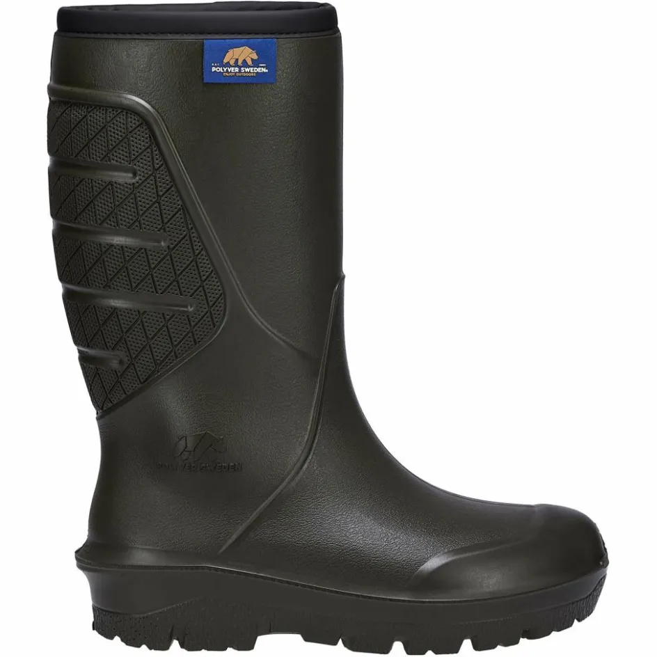 Der Classic Winter High von Polyver ist ein gefütterter Gummistiefel, der zuverlässigen Nässeschutz mit angenehmer Wärme verbindet. Der hohe Schaft hält dir die Elemente zuverlässig von den Füßen. Die spezielle Konstruktion des Obermaterials mit eingekapselten Luftblasen sorgt dafür, dass der Stiefel hervorragend isoliert und gleichzeitig leicht ist. Das kuschelige Synthetikfutter verstärkt den Wärmeeffekt. Auf rutschigen Oberflächen bietet die griffige Sohle Halt. Kurzum: Ein robuster, funktionaler Stiefel für Winterwanderungen im Wald oder Spaziergänge am Seeufer.