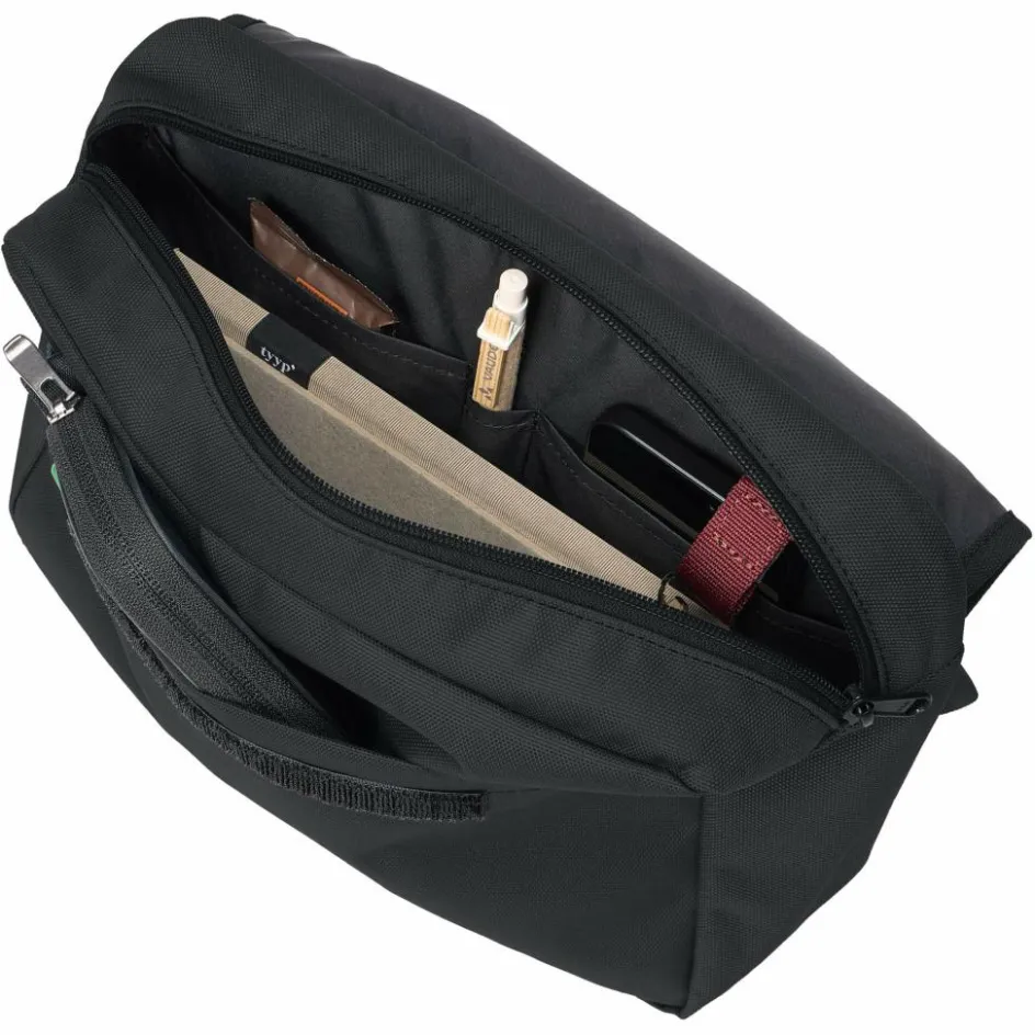 Die Coreway Messenger 6 ist mit ihren sechs Litern Volumen eine kompakte und praktische Umhängetasche für den Alltag. Sie besteht aus recyceltem Hauptmaterial und hat eine clevere Innenaufteilung. Wichtige Gegenstände wie Portemonnaie und Schlüssel sind im RV-Hauptfach sicher verstaut. Für schnellen Zugriff gibt es offene Fächer an der Vorderseite, ideal für Taschentücher oder Snacks. Hinten befindet sich ein weiteres Reißverschlussfach, das sich gut für Smartphone oder Schlüssel eignet. Der Schultergurt lässt sich einfach und individuell verstellen. Die Coreway Messenger 6 besteht fast vollständig aus PET-Polyester. Die orangefarbene Markierung bedeutet, dass der betroffene Teil aus einem anderen Material besteht. Um am Produktlebensende ein sortenreines textiles Recycling zu ermöglichen, kann der Teil mit der Markierung einfach abgenommen werden. Die Umhängetasche ist mit einer PFC-freien DWR-Imprägnierung wasser- und schmutzabweisend ausgerüstet.