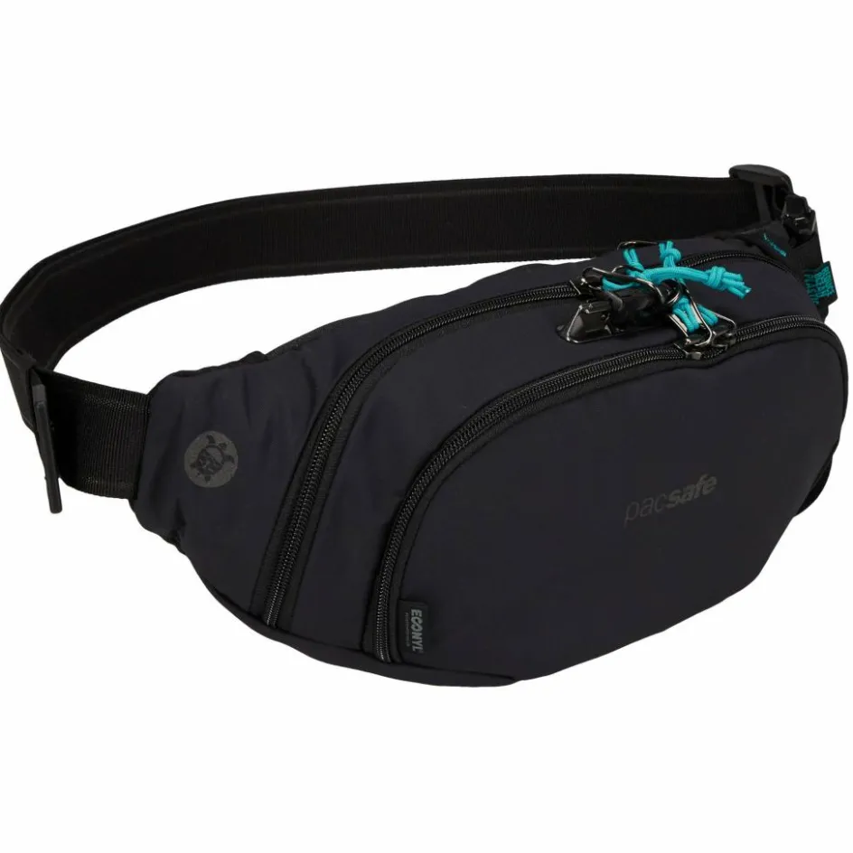 Das ECO Waist Pack gehört zu Pacsafes ECO-Serie, die aus fast 100% recycelten Materialien hergestellt wird und damit besonders nachhaltig ist. Unter anderem werden Econyl-Nylon aus Meeresmüll und Nylonabfällen sowie Polyester aus recycelten Plastikflaschen verwendet.