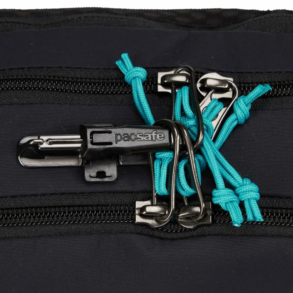 Dass Pacsafe der Schutz der Meeresschildkröte und ihres Lebensraumes wichtig ist, erkennst du nicht nur an dem Logo der Marke, sondern auch an dem wunderschönen Ozeanblau der Zipper und des Innenfutters, das einen tollen farblichen Akzent setzt.