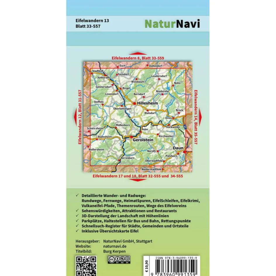 Detaillierte Wander- und Radwege: Rundwege, Fernwege, HeimatSpuren, EifelSchleifen, Eifelkrimi, Vulkaneifel-Pfade, Themenrouten, Wege des Eifelvereins 3D-Darstellung der Landschaft mit Höhenlinien Sehenswürdigkeiten und Attraktionen Viele Einkehrmöglichkeiten (Restaurants) sind dargestellt und namentlich bezeichnet Parkplätze und Parkhäuser sowie Haltestellen für Bus und Bahn Forstliche Rettungspunkte mit ihrer Nummer für Notfälle UTM-Koordinatennetz für GPS-Nutzer mit feinem 1000 m Abstand Schnellsuch-Register für Städte, Gemeinden und Ortsteile Inklusive Übersichtskarte Eifel Gedruckt auf wasserfestem, strapazierfähigem und umweltfreundlichem Papier ohne Kunststoff-Kaschierung