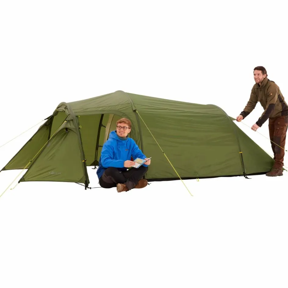 Radreisen, Paddelabenteuer oder Familienwanderung mit Kind? Kein Problem für das Errigal 3XT. Das Tunnelzelt ist gewichtsoptimiert geschnitten und bietet in der Apsis ausreichend Platz für das Gepäck.