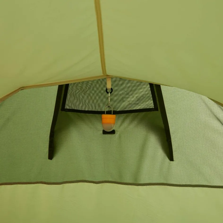 Die Apsis bietet mit 165 x 205 cm viel Platz für Rucksäcke, Packtaschen und diverse andere Ausrüstung. Sie kann über den Seiten- oder Fronteingang betreten werden. Bei milder Witterung kannst du über Nacht den Fronteingang geöffnet lassen und so für maximale Belüftung sorgen.
