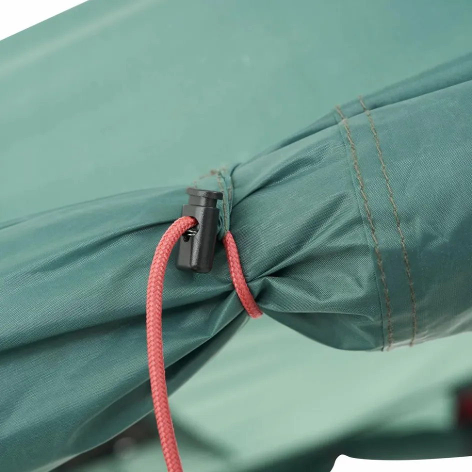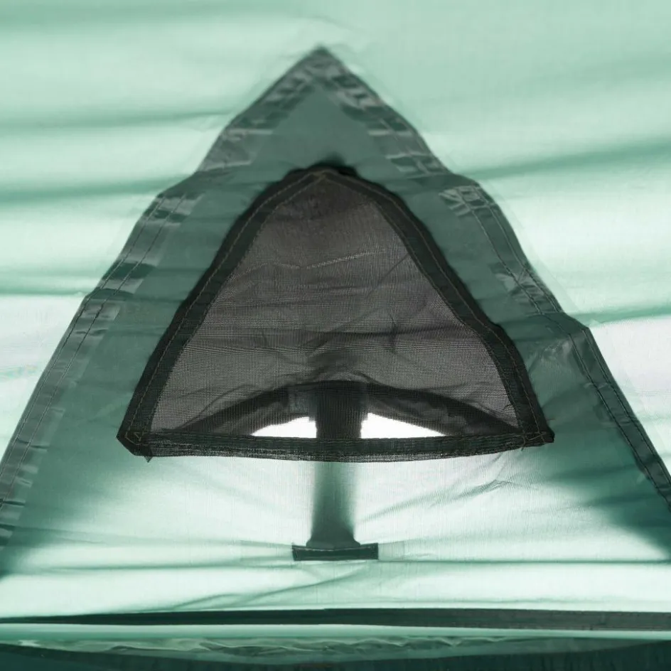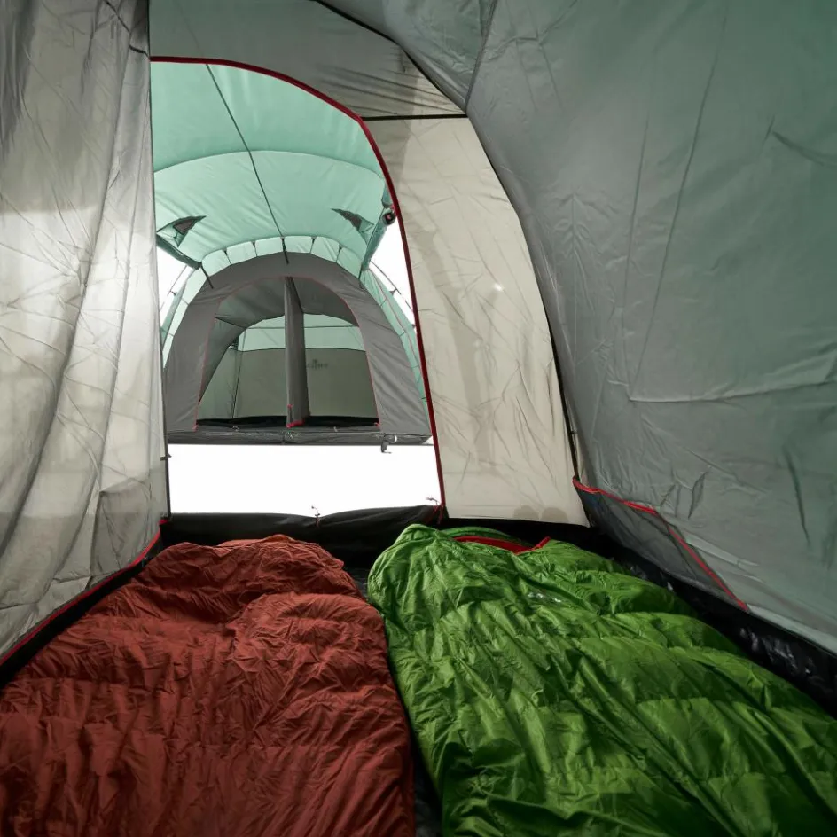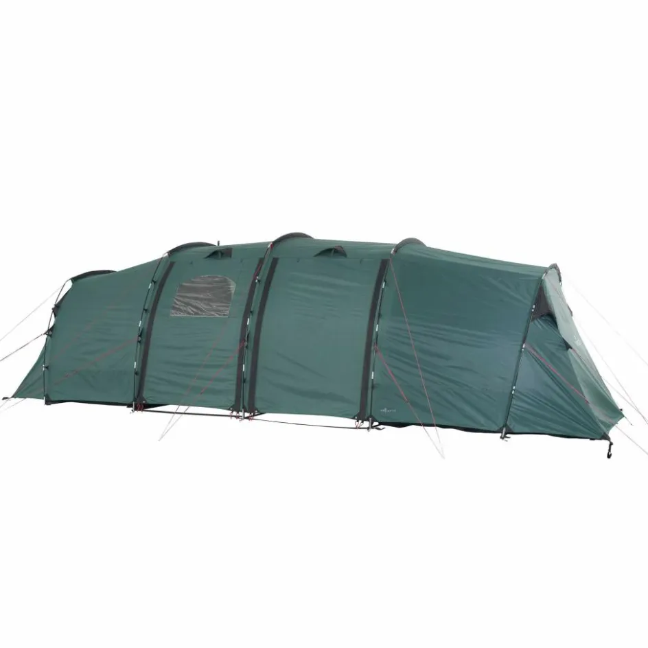Werden beide Innenzelte ausgehängt, kann das verbleibende Überzelt als Zelt für z. B. Gartenpartys dienen. Vier Eingänge, die teilweise hochgestellt werden können, bieten nicht nur eine gute Aussicht, sondern mit den acht weiteren Lüftern auch eine optimale Raumbelüftung. Die Fenster stellen jedoch auch bei geschlossenen Eingängen eine gute Sicht nach draußen bereit.