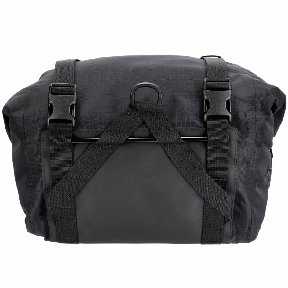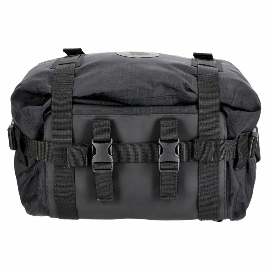 Der Rollverschluss erlaubt dir einen großzügigen Zugang zum Inhalt der Lenkertasche. üppige 13 Liter Volumen stehen dir zur Verfügung. Die öffnung nach oben zeigt sich dabei sehr Fahrer:innen-freundlich. Zwei Kompressionsriemen halten die Ladung kompakt zusammen. An den Hypalon-Laschen der Riemen kannst du zusätzliches Equipment fixieren.