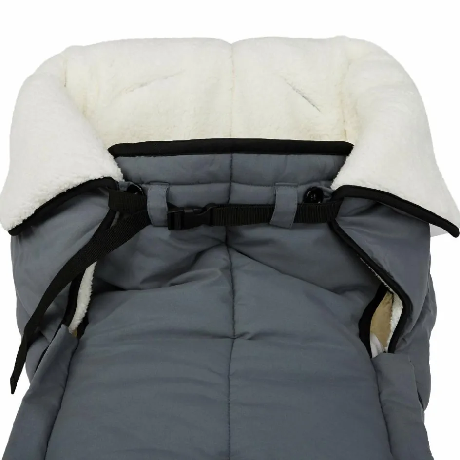 Dieser kuschelige Schlittensack für Kinder lässt sich per Reißverschluss an den Seiten komplett öffnen. Das erleichtert den Ein- und Ausstieg und die Reinigung enorm!
