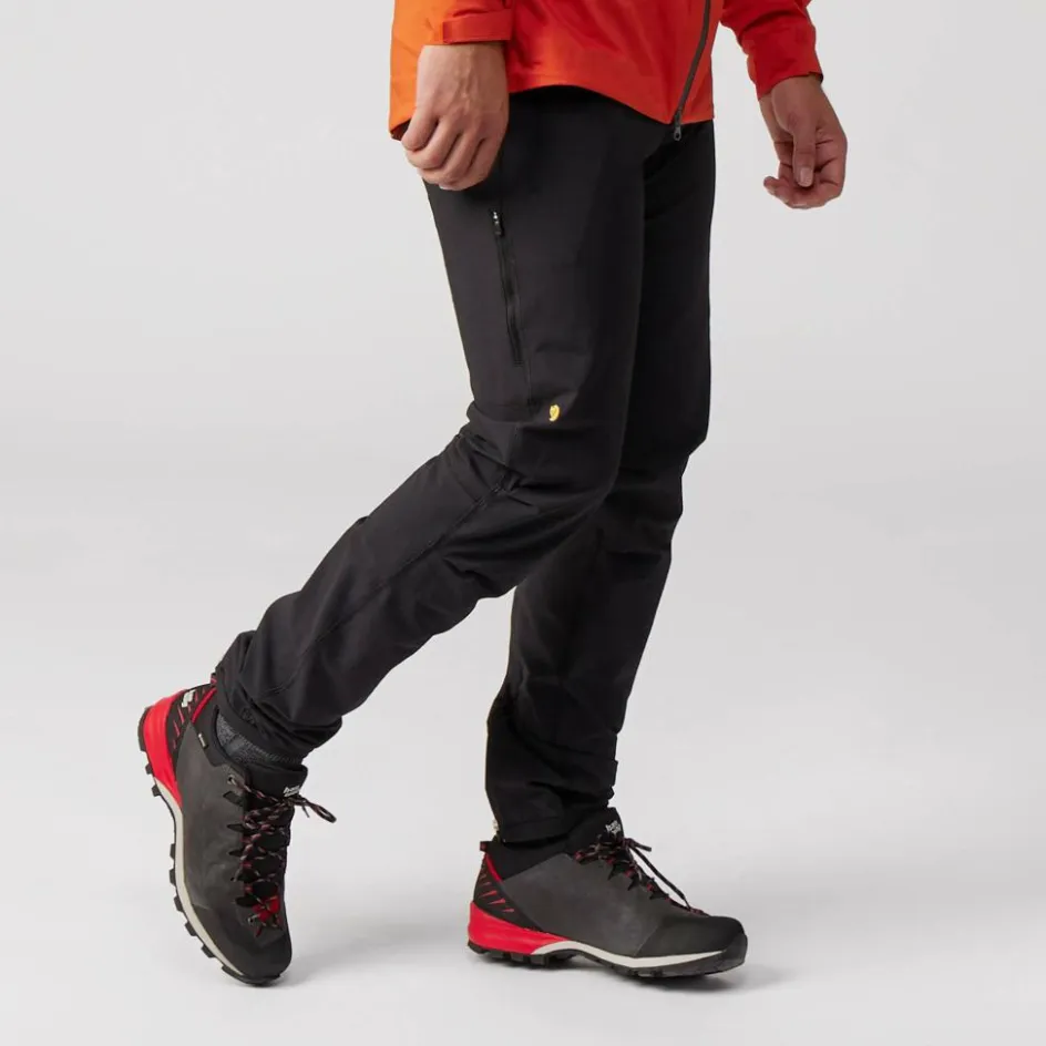 Als Obermaterial wird auf sattes Veloursleder gesetzt, das robust genug ist, um auch mit scharfkantigem Geröll oder rostigen Leitersprossen auf Klettersteigen mühelos zurechtzukommen. Für zusätzliche Robustheit sorgen solide Schutzkappen aus Gummi im Zehen- und Fersenbereich. Beim Makra Pro Low GTX wurde aber nicht nur an den Schutz des Materials, sondern auch an den Schutz vor Wetter gedacht. Der Zustiegsschuh ist mit einer wasserdichten und zugleich atmungsaktiven Gore-Tex Membran ausgestattet.