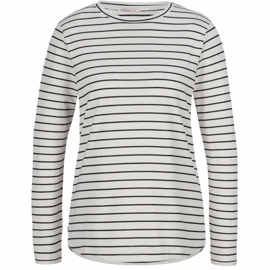 Das Materialtrio dieses Langarmshirts setzt sich aus recyceltem Polyester, weicher Baumwolle und dehnbarem Elasthan zusammen. Die Kunstfaser steuert das gute Feuchtigkeitsmanagement bei. Wenn du in warmen Gefilden ins Schwitzen gerätst, wird die Feuchtigkeit nach außen geleitet. Durch das Materialgemisch trocknet das Shirt schneller wieder als eins aus reiner Baumwolle. Diese ist allerdings für die ansprechende Haptik und das angenehme Tragegefühl zuständig.