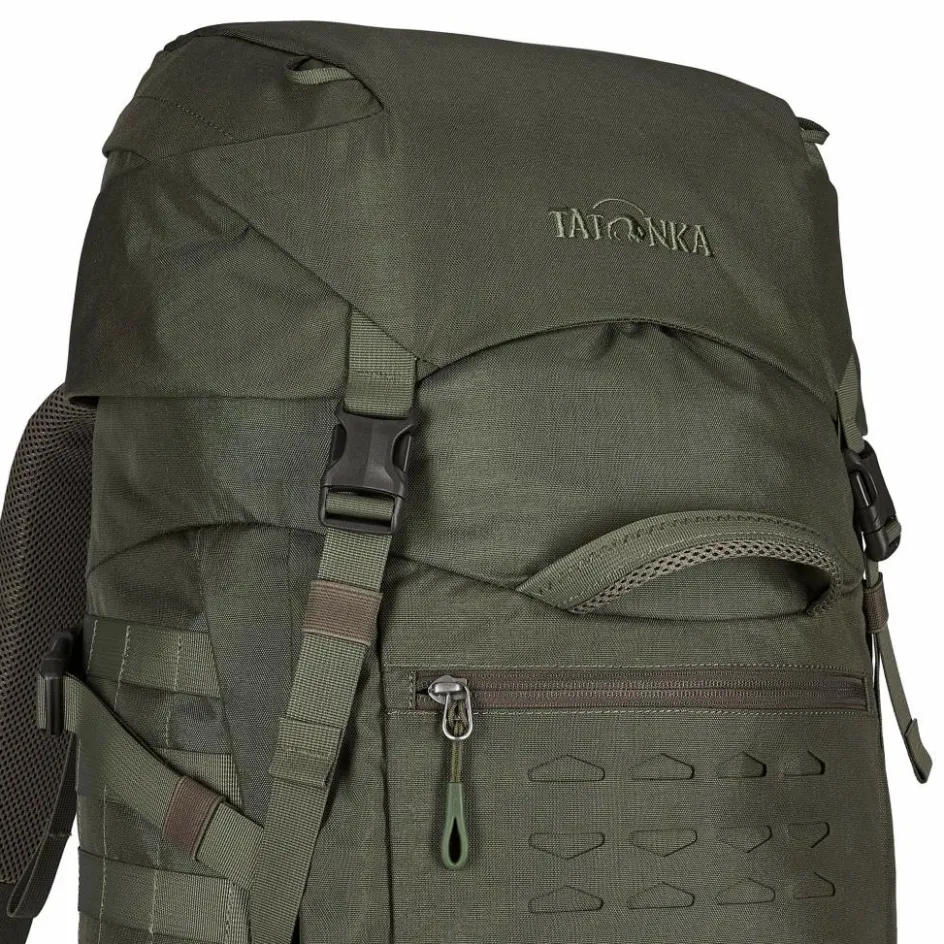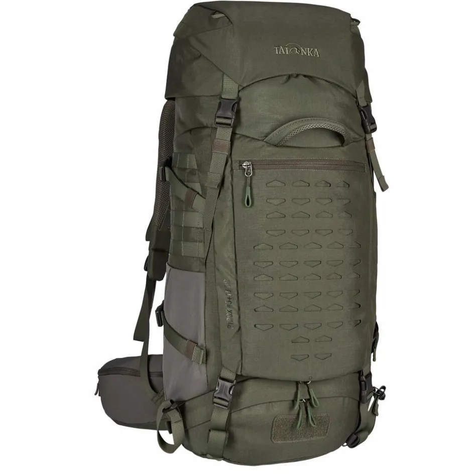 Dass Tatonka bei der Entwicklung des Pyrox 45+10 BC die Bedürfnisse von Bushcrafter:innen im Blick hatte, wird nicht nur an der unauffälligen Naturfarbe deutlich. Der Trekkingrucksack ist aus robustem Cordura gefertigt, sodass du ihn beim Abladen im Gelände nicht mit Samthandschuhen anzupacken brauchst. Dazu kommen vielfältige Möglichkeiten, zusätzliche Taschen oder Ausrüstung mithilfe des MOLLE-Systems zu befestigen – perfekt um Werkzeug und Co. griffbereit anzubringen. Dank zweier Tragegriffe lässt der Pyrox 45+10 BC sich auch bei schwerer Beladung sehr gut handhaben.
