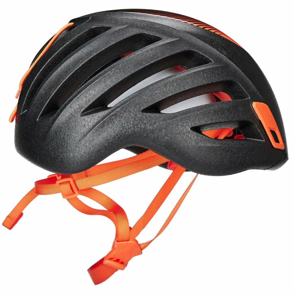 Mit nur 170 g Gewicht bietet dieser Helm hohen Tragekomfort, ohne zu belasten. Die Hybrid-Konstruktion kombiniert eine Helmschale aus expandiertem Polypropylen (EPP) mit einer harten Außenschale aus Polycarbonat und einer Innenschale aus expandiertem Polystyrol (EPS).