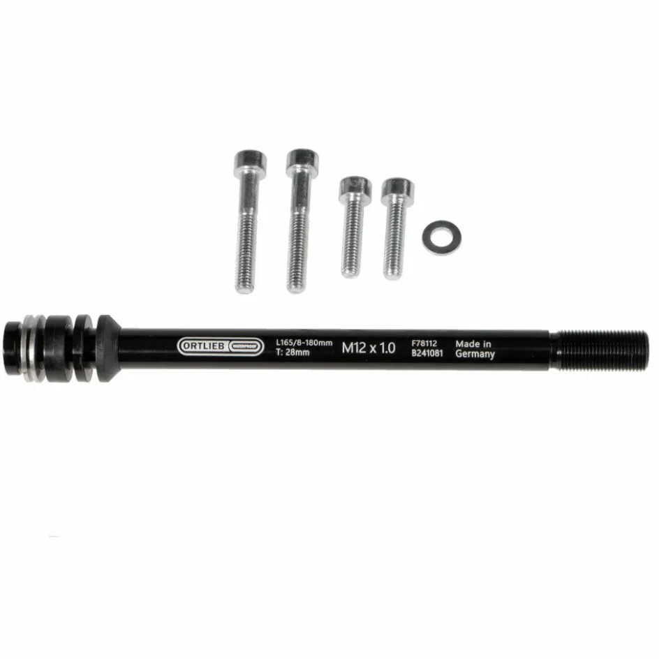 Universelle Steckachse mit M6-Innengewinde an beiden Seiten, um das Befestigen eines Gepäckträgers (Ortlieb Quick-Rack) oder eines Anhängers zu ermöglichen. Mit den Spacern an deinen Rahmen anpassbar.