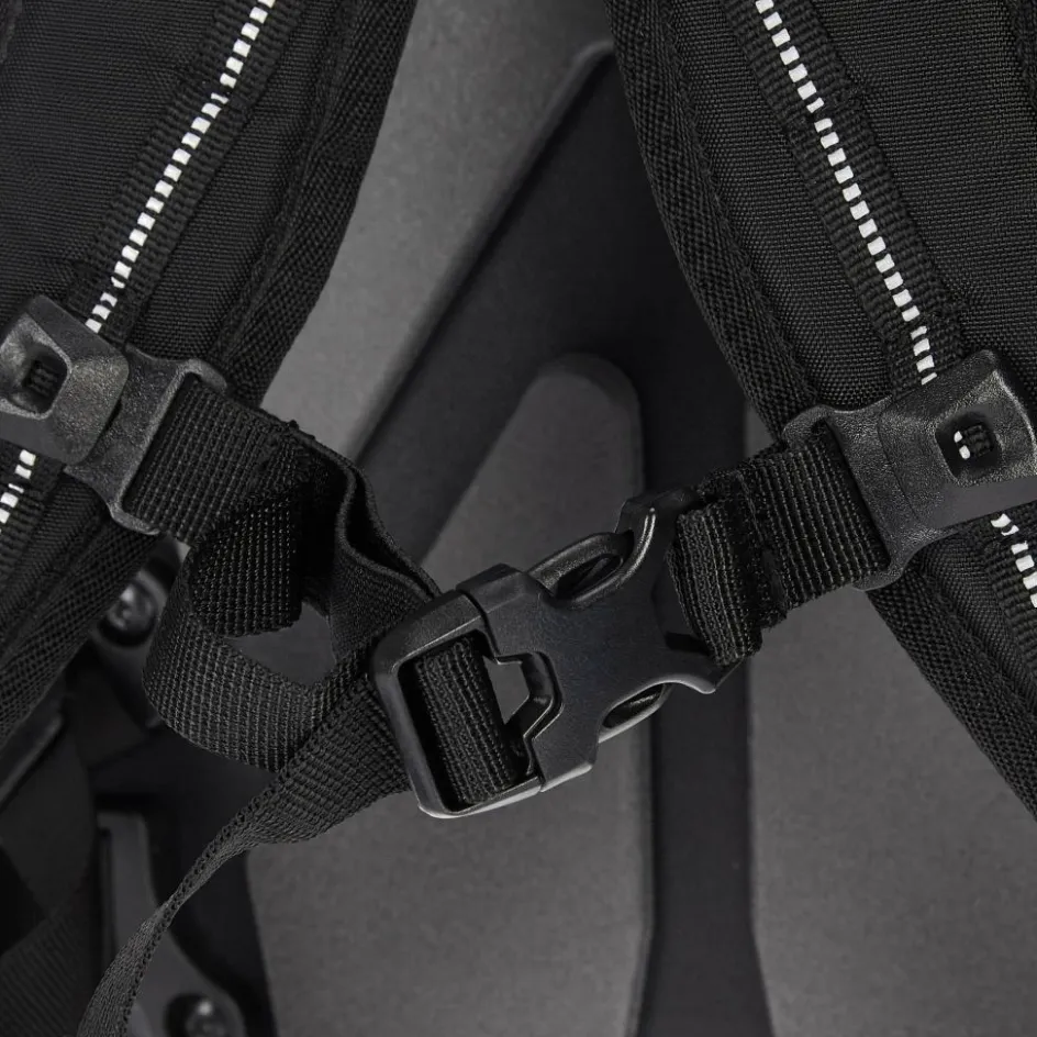 Das gepolsterte Laptopfach ist schwebend angebracht. So stößt der Laptop beim Absetzen des Rucksacks nicht auf dem Boden auf. Zwei Standfüße schützen die Unterkante des Velocity PS 17L und geben ihm Standsicherheit. Der Fahrradrucksack ist wasserdicht, aber wie immer gilt: Um die Wasserdichtigkeit zu gewährleisten, muss der Verschluss 3x gerollt werden!